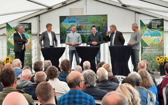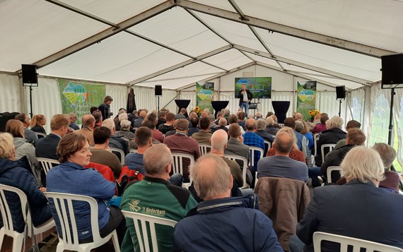 Peter Drenth, gedeputeerde van de provincie trapte stevig af. Hij gaf aan dat onteigening niet op zijn lijstje stond, maar dat Gelderland bewust kiest voor een transitie naar een meer natuurinclusieve landbouw, waarin uitgegaan wordt van de intrinsieke kracht van elke agrarische ondernemer. ‘’Niet omdat het moet, maar omdat het kansen biedt’’, zegt Drenth. “Wij willen als provincie een helpende hand bieden, maar niet op de stoel van de ondernemer zitten. Het is belangrijk dat we hier samen in optrekken en samen werken aan het behoud van biodiversiteit, het karakteristieke coulissenlandschap in de Achterhoek in combinatie met een duurzaam en toekomstbestendige landbouw’’. Het Platform Natuurinclusieve landbouw Gelderland, dat in 2021 van start is gegaan, maakt hiervan onderdeel uit. Dit initiatief geeft boeren de mogelijkheid binnen verschillende projecten te onderzoeken wat past binnen hun bedrijfsvoering