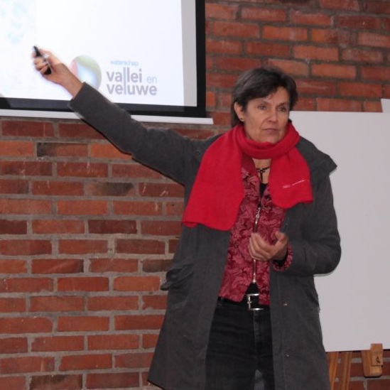 Na de pauze nam Mariken Fellingen, Opgavemanager Transitie Landelijk Gebied bij Waterschap Vallei & Veluwe, de deelnemers mee in de veranderde wateropgaven. “Waar voorheen de nadruk lag op het afvoeren van water, moeten nu meer gaan denken in het vasthouden van water. Dat vraagt in een andere inrichting van bodem- en watersystemen. Dat zorgt voor veranderingen bij zowel landeigenaren als het waterschap.’’
