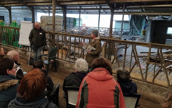 René neemt het gezelschap mee in de geschiedenis van de boerderij. Hij vertelt hoe hij en zijn vrouw het familiebedrijf van zijn schoonouders hebben overgenomen. Zoals menig boer groeide het bedrijf in de loop van de jaren. Het doel was om door te groeien naar 120 melkkoeien. En toen kwamen de fosfaatregels. Voor René op een ongunstig moment, omdat de laatste dertig koeien nog niet op stal stonden. René en zijn vrouw voelden zich steeds meer bekneld tussen (nieuwe) regelgeving en investeringen. Nadat hij ook nog eens knieklachten kreeg, besloten ze om het roer drastisch om te gooien. De fosfaatrechten werden verkocht en het boeren werd over een andere boeg gegooid. Uiteraard had dit proces wel wat voeten in de aarde. Met name het afscheid nemen van de melkkoeien viel zwaar.