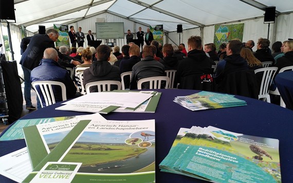 Martijn van der Heide, bijzonder hoogleraar natuurinclusieve plattelandsontwikkeling aan de Rijksuniversiteit van Groningen schetste in zijn verhaal de noodzaak van de transitie. ‘’Jaren van ontwikkeling, groei en intensivering hebben ertoe geleid dat we onze grenzen binnen de landbouw hebben bereikt, zowel op het economische, ecologische als sociale vlak. De enorme groei van landbouwbedrijven was de laatste decennia nodig om het inkomen van de agrariër op peil te houden. Dat is ten koste gaan van de ecologie. Schaalvergroting, intensivering, monocultuur hebben afbreuk gedaan aan landschap, natuur en biodiversiteit. Nu ook nog de maatschappij vraagt om gezond en verantwoord geproduceerd voedsel en behoefte heeft aan ruimte op het platteland, kunnen we er niet meer omheen: we moeten het anders gaan doen. Dit hoeven de boeren niet alleen te doen, maar dit moet plaatsvinden in de gehele keten’’, zegt Van der Heide. Van producent tot consument. In deze transitie staat 'boeren met natuur' centraal, waarbij aandacht is voor een gezonde bodem, landschap, maatregelen op erf- en gebiedsniveau en inzet op specifieke soorten. Het toepassen van natuurinclusieve landbouw is hierbij een middel. Download hier de presentatie.