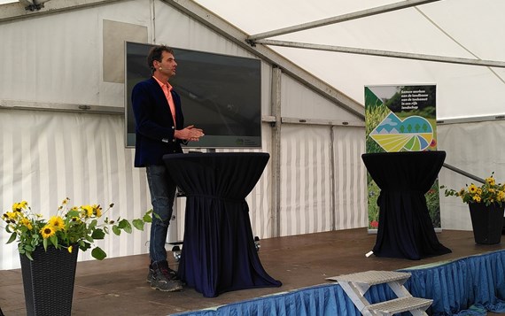 Met veel toekomstige jonge ondernemers in de zaal trapte Pouwel Inberg de inspiratiebijeenkomst af. Hij is naast wethouder in Brummen ook stuurgroepslid van het Platform Natuurinclusieve landbouw Gelderland. ‘’We moeten het met zijn allen doen’’, zegt Inberg. ‘’We staan voor een grote uitdaging, waarin we zoeken naar ruimte voor wonen, natuur, landschap, energie, en recreatie. Deze ruimte vinden we op het platteland, maar een groot deel van deze ruimte heeft de landbouw in gebruik voor de voedselproductie. We moeten samen op zoek naar een economisch systeem waarin landbouw en natuur elkaar kunnen vinden. Dat vraagt een om transitie’’, meent Inberg. Een verandering waarbij de gemeente Brummen boeren ondersteunt in dit proces door bijvoorbeeld het geven van cursussen. Daarnaast ondersteunt de Provincie Gelderland deze transitie door het initiëren van initiatieven en projecten rondom natuurinclusieve landbouw.